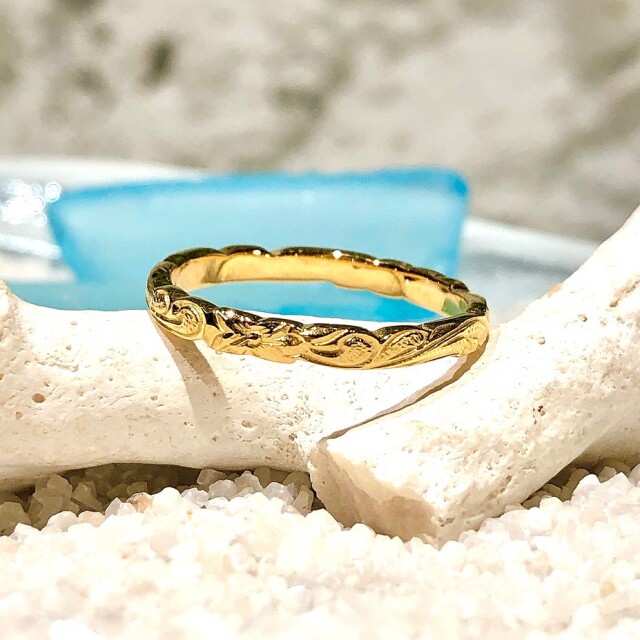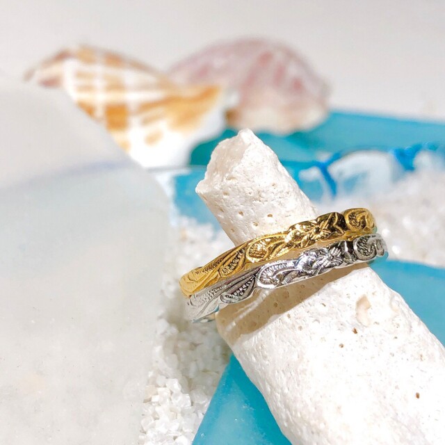 ■新作カレイキニリング エッジがカットアウトされていて素敵なリングです。 幅3mm/厚み1mm シンプルで他のリングとの重ね付けもしやすいリングです 男性でも女性でもオススメです!! ================================================== #7から#21 ギフトラッピングについて ラッピングをご希望の場合、 購入時のオプション欄にてギフトラッピング(有料)or(無料)をお選びください。 サージカルステンレス使用のハワイアンジュエリー。 医療用に使われているサージカルステンレスは肌に優しく、 金属アレルギーでアクセサリーをつけられない方にも安心です。 シルバーアクセサリーより軽くて丈夫で変色しない素材ですのでお手入れ不要で海水や温泉につけても大丈夫です。 男性でも女性でも素敵です。