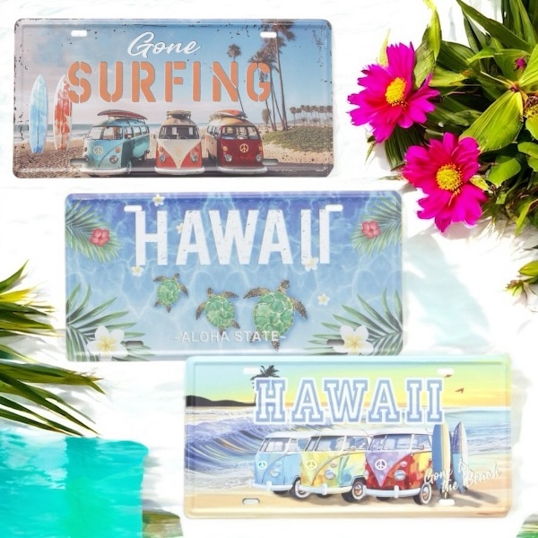 壁にかけてお部屋でもハワイを感じれるデザインのライセンスプレート。壁に並べて飾ったり、置いて飾っても素敵です。お部屋の雰囲気に合わせて飾るとグッとハワイの雰囲気に。
