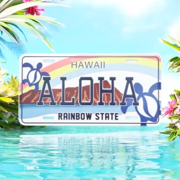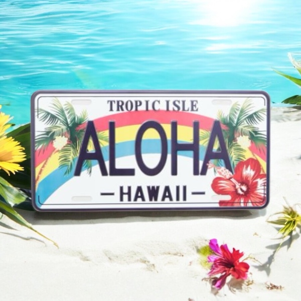 ハワイのナンバープレートをイメージさせるデザイン。お部屋の壁に掛けたり棚に立て掛けるだけでお部屋がハワイアンな雰囲気に。