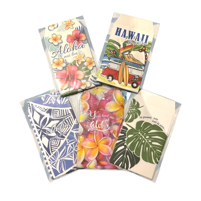 HAWAIIらしい柄や 色鮮やかな景色がデザインされたポチ袋。 何かと便利です。 サイズ 縦9.7cm 横6.3cm 5枚で1セット