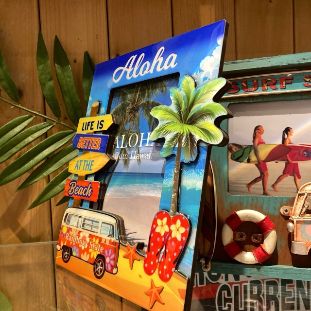 縦 23cm 横 18cm(写真サイズ 縦15cm 横10cm) ポップなカラーリングのフォトフレーム。ハワイを感じさせてくれるフォトフレームです。ハワイを感じられるフォトフレームに大切な写真を飾ってみてはいかがでしょうか。