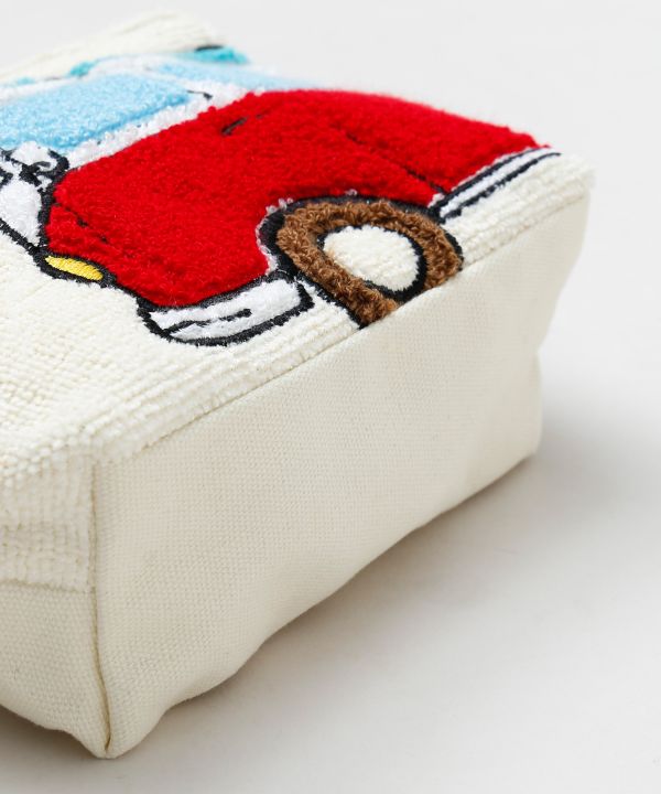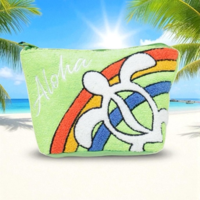ハワイを代表するモチーフを、 立体感のあるサガラ刺しゅうで丁寧に表現したポーチ。 内側には仕切りが付いていて、小物の整理もスムーズに。カラフルなデザインで、バッグの中でも存在感を放ちます。ギフトにもおすすめ。 サイズ 縦 14cm 横 21cm マチ 6cm