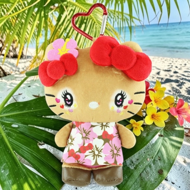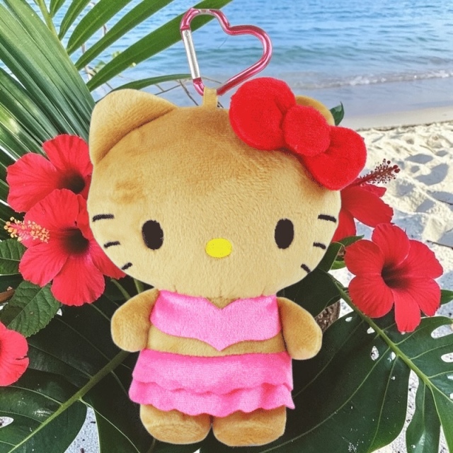 ハローキティ 日焼けシリーズ ピンク、コギャル、入荷! バッグやお部屋に飾ってもかわいいです。 H15cm