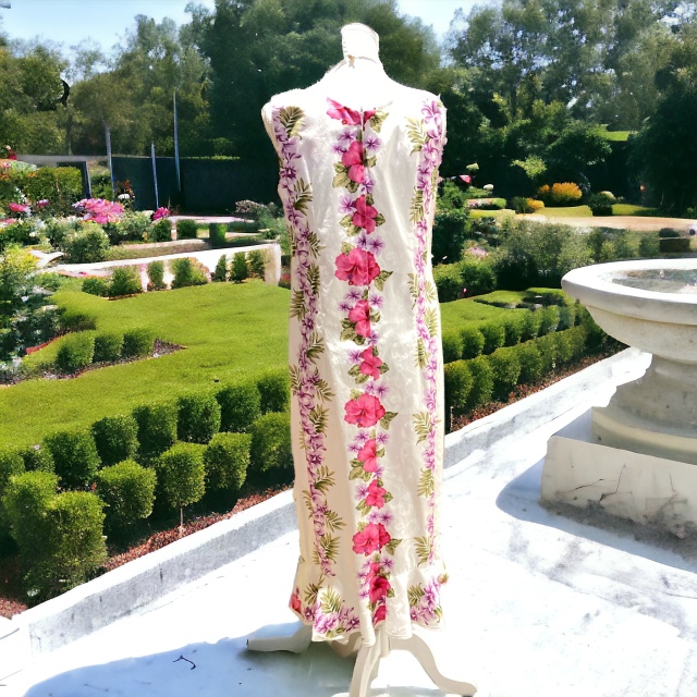 ハワイアンな綺麗な結婚式や、パーティーにも使えるワンピースは、シルエットが綺麗です。